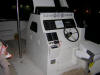 Mid Ship Floor Upper Section: 1. L seat extended. 2. Floor access hatch. 3. Upholstery . 4. Curved custom made aluminum framed windshield. 5. Light. 6. Console with instrument panel. 7. Pilot seat. 8. Counter with S/S sink and vanity behind pilot seat. 9. Storage space.